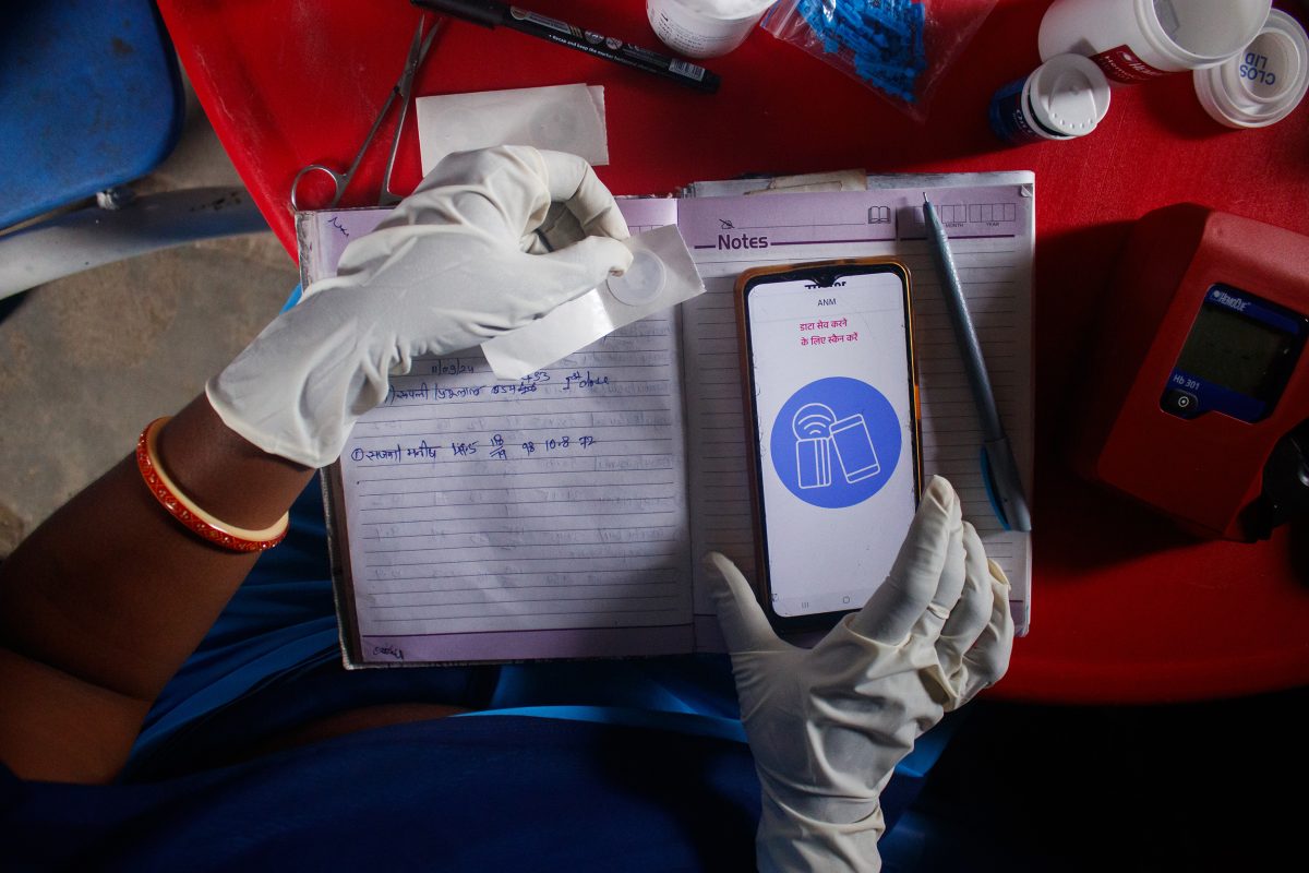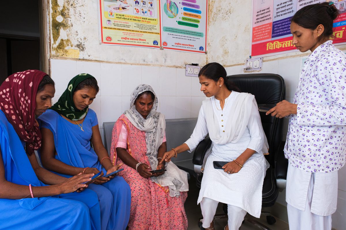 Accredited Social Health Activists (ASHA) workers using the CHIP platform on their mobile devices.